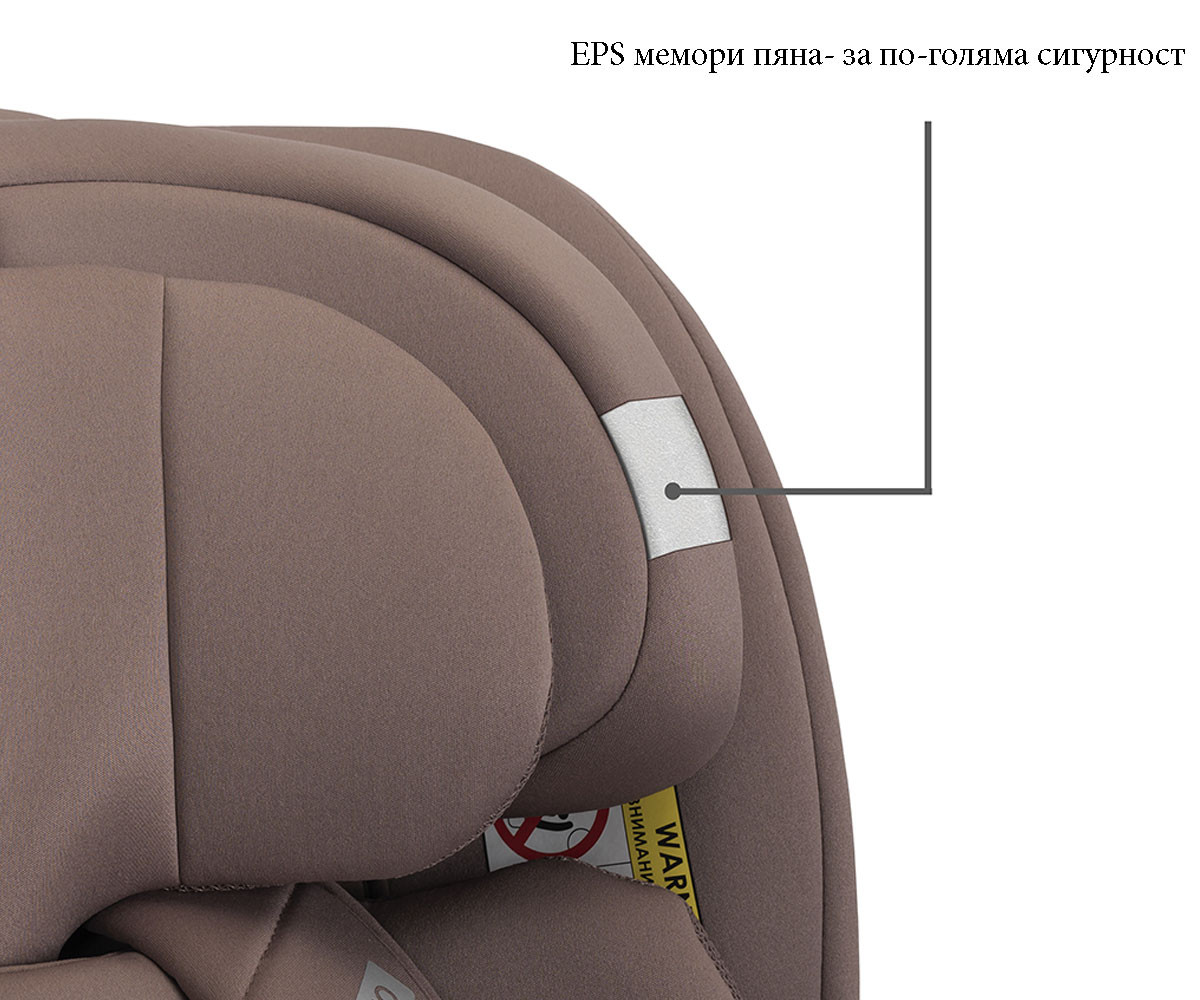 - Регулируема облегалка: 3 позиции при ориентация, обратна на движението /40-105 см/ и 3 позиции при ориентация по посока на движението /76-150 см/;
