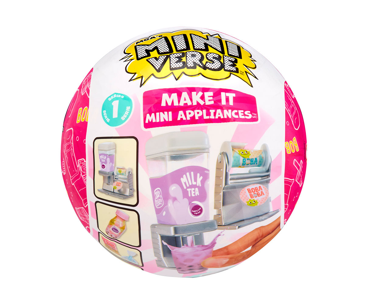 Miniverse Make It Mini уреди от MGA предлага нови начини за създаване на миниатюри! Използвайте тези устройства, за да ви помогнат да направите, настроите и покажете любимите си напитки Miniverse Make It Mini Food. Всяка сфера се предлага с мини уред, който е наистина функционален, както и аксесоари и съставки за приготвяне на вашите мини напитки! Всеки пакет включва 1 уред, 1 бутилка със смола, 2 чаши, в които да разпределите смолата си и уникални аксесоари. След като приключите със създаването на вашата миниатюра, я поставете на слънце или под 365 nm UV светлина, докато смолата се втвърди. След като се втвърди, ще можете да се насладите на своята колекция! Има 8 уникални стила MGA's Miniverse Make It Mini уреди за колекциониране! Изображението в предната част на топката ще покаже кой уред ще получите, но ИЗНЕНАДАТА е цветът!