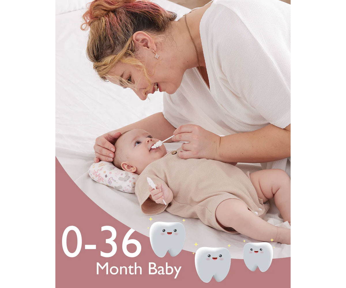 Почистващият тампон за бебешки език Momcozy помага за пълното почистване на устната кухина на бебето. Изработена от 100% медицинска марля, безопасна и нежна за бебето. Стабилна, устойчива на счупване дръжка, която предотвратява случайни наранявания. Този комплект осигурява пълна грижа за устната кухина на бебето. Комплектът съдържа 40 броя почистващи тампона, всеки във вакуумна индивидуална опаковка – чисти за дългосрочно съхранение, лесни за носене и без допълнително натоварване при пътуване.