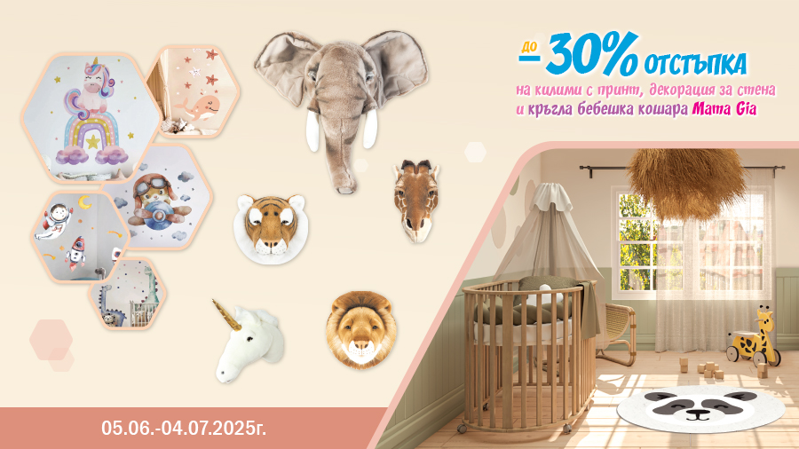 До -30% отстъпка на килими с принт, декорация за стена и кръгла кошара Mama Gia