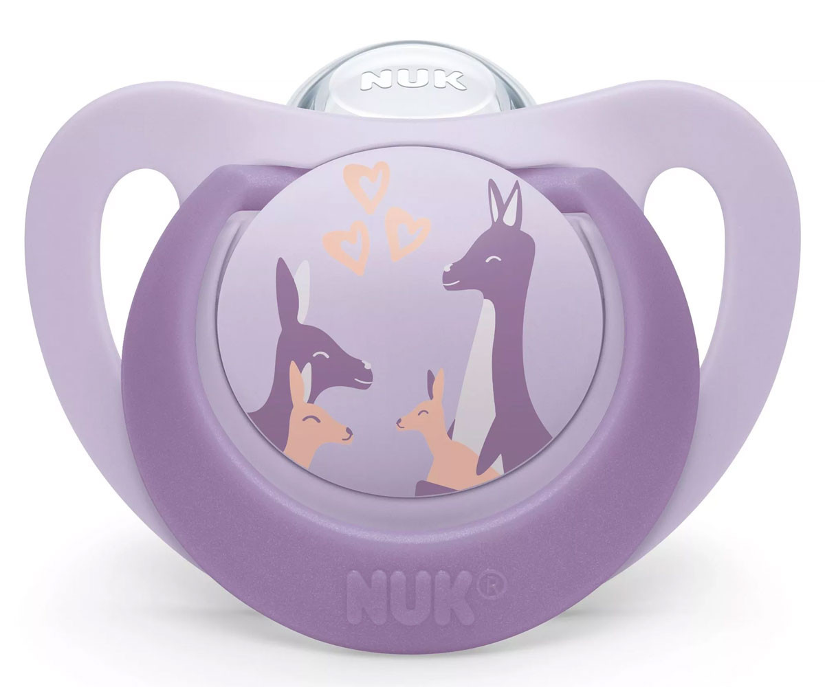 NUK силиконовата залъгалка е предназначена за цветно и весело ежедневие на бебето. Силиконът е прозрачен материал, лесен за почистване и устойчив на високи температури. Той не съдържа вредни вещества, няма мирис и е с гладка повърхност. Благодарение на системата NUK Air System въздухът излиза от силиконовата част, което позволява залъгалката да остане мека и гъвкава.