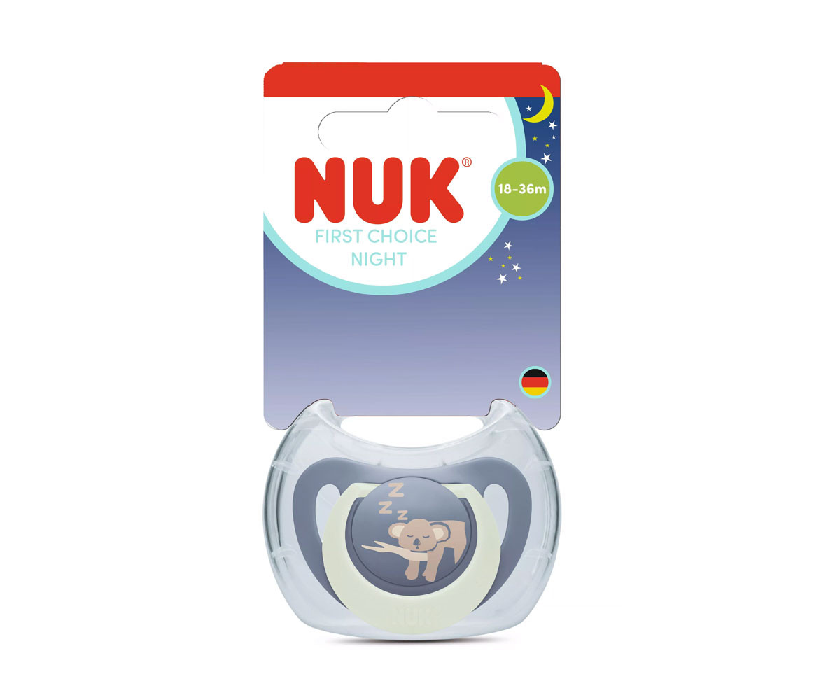 - Име: Nuk - Силиконов биберон залъгалка First Choice Night, 1 брой, с кутийка, 18+м, Коала
