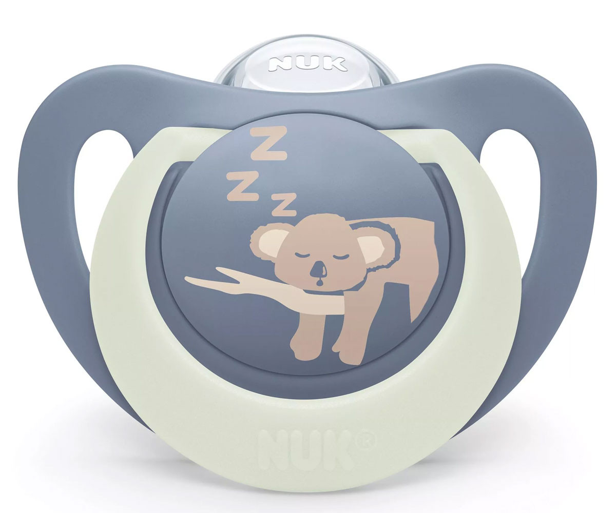 NUK светеща в тъмното залъгалка помага на бебето по-лесно да намери пътя към спокойния сън. Благодарение на специалния материал, който е безопасен за бебето, залъгалката излъчва мека светлина и може лесно да бъде открита дори през нощта. NUK Night силиконова залъгалка е оформена като майчиното зърно по време на кърмене. Всеки ден за бебето е изпълнен с много нови и вълнуващи преживявания. Залъгалката е негов приятел, на който може да разчита, за да получи сигурност и спокойствие, докато суче. Независимо дали бебето се разстройва от непознати лица или звуци, сукането на залъгалка има силно успокояващо действие. За да се подобри още повече това усещане за комфорт и за да бъде сукането полезно за бебето, залъгалката е специално разработена.