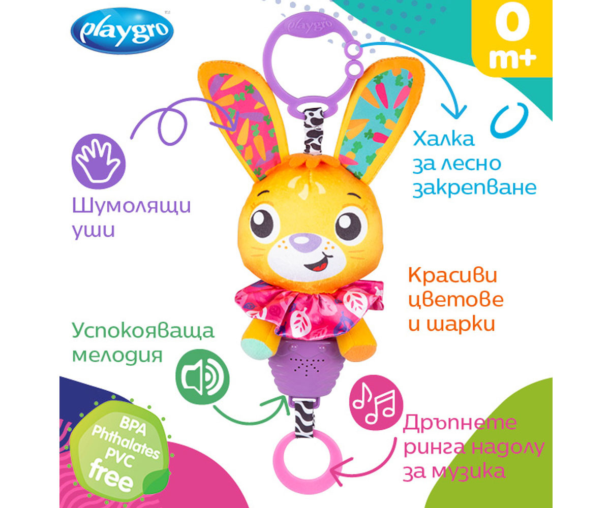 - Име: Playgro - Музикална играчка зайче, 0м+