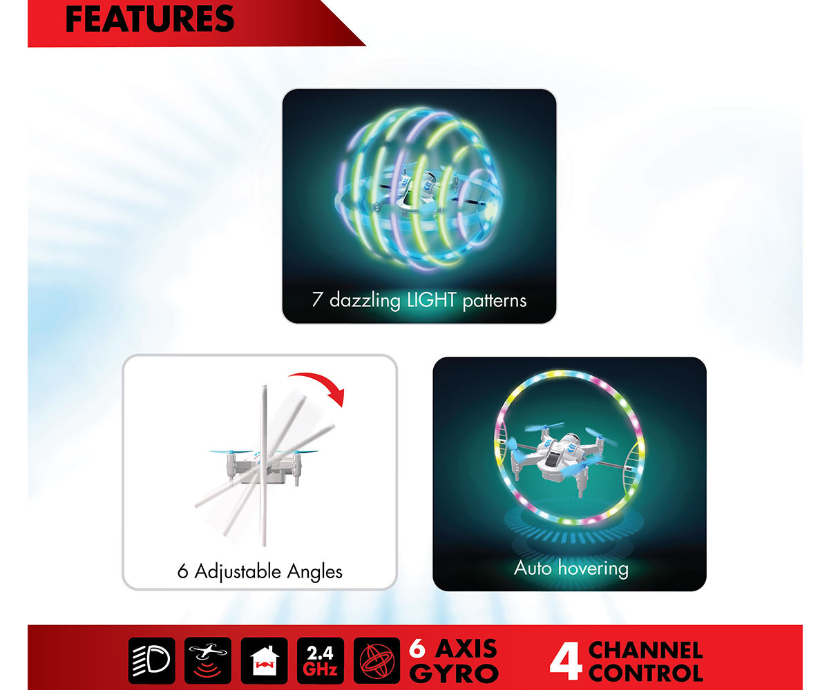 Идеален подарък за млади любители на технологиите, светлинните ефекти и летящите играчки! Забавление и възхищение гарантирани – както на закрито, така и на открито.