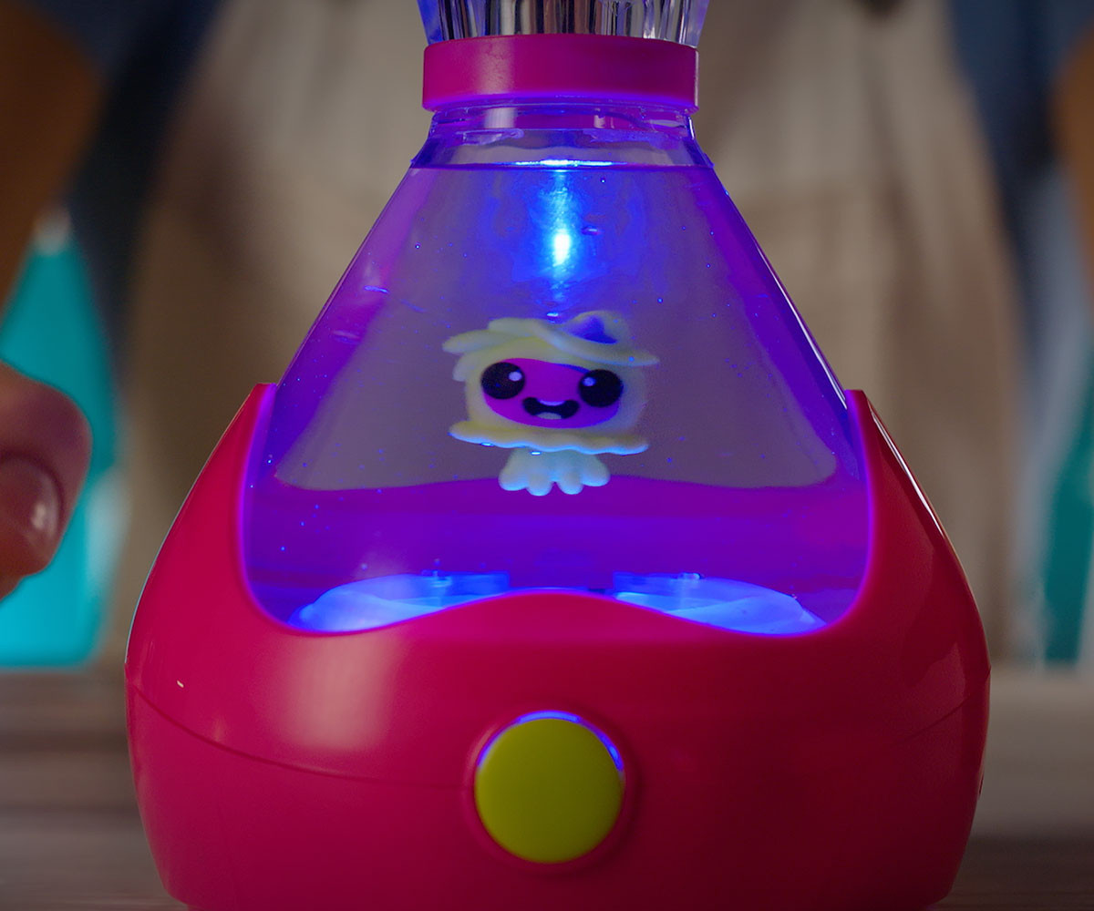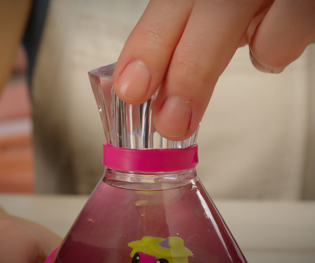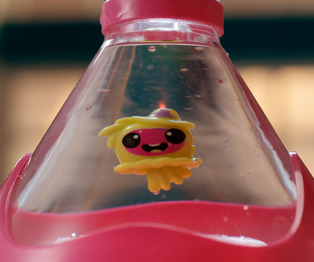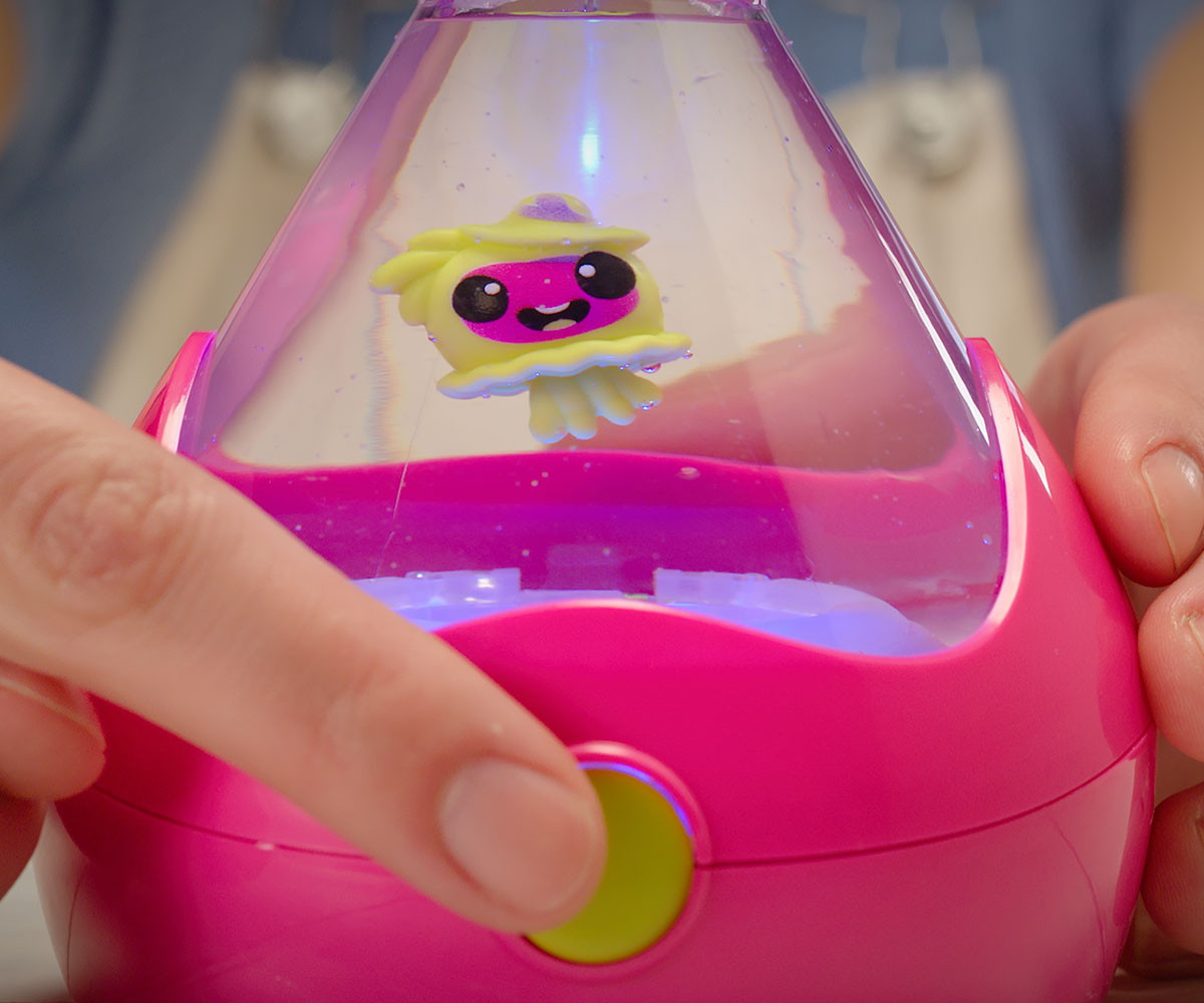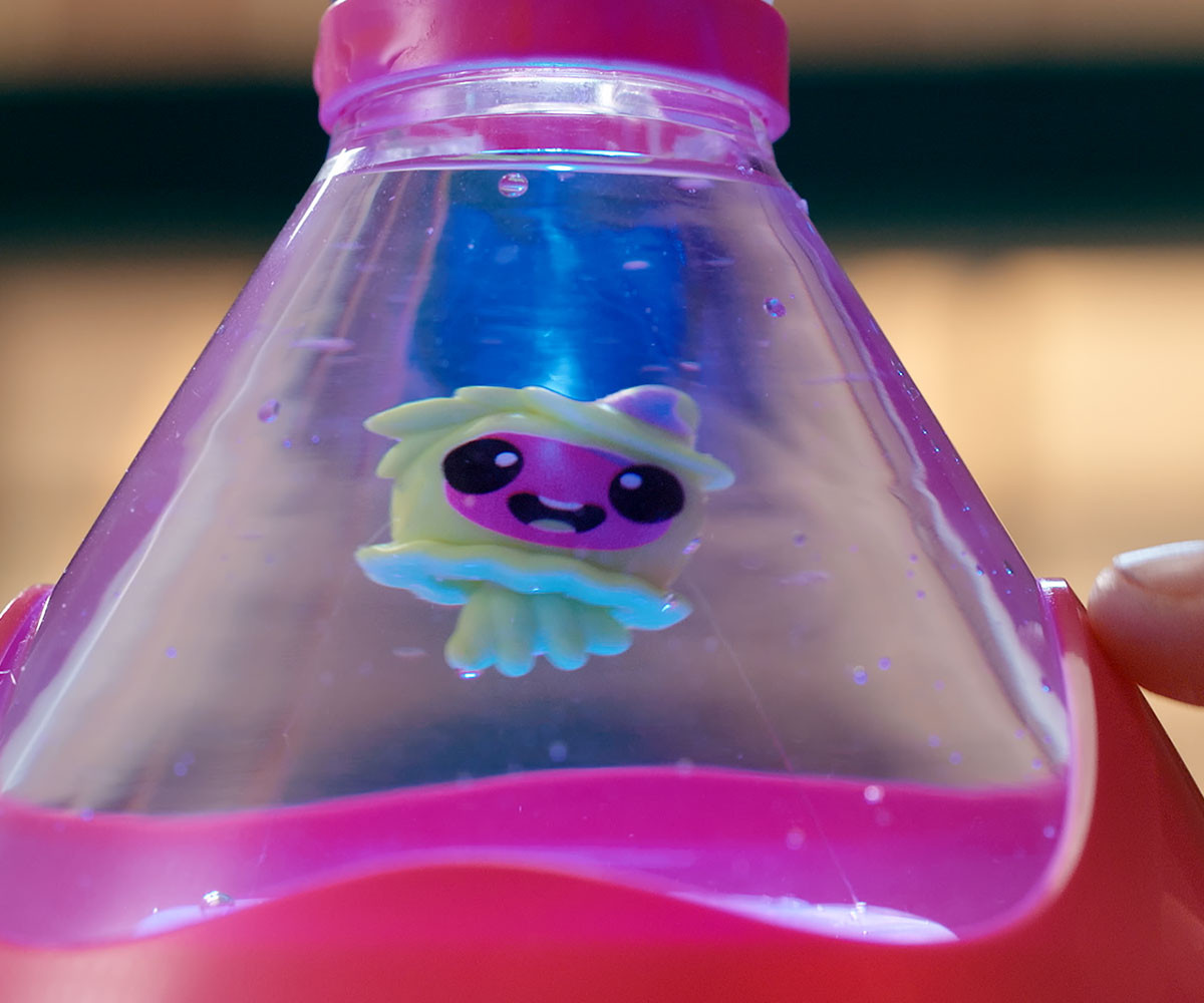FIZZY PETS е мистериозен приятел, който се крие в омагьосана бутилка! Просто добави вода и гледай как FIZZY PET изскача с ефектно „шумолене“ и мехурчета! Играй със своя нов приятел, като докосваш лявата или дясната страна на бутилката – и наблюдавай как FIZZY PET магически плува със светлинни и звукови ефекти. Натисни бутона, за да влезеш в танцов режим, при който твоето FIZZY PET ще танцува весело на до 5 различни песни. Задръж бутона по-дълго, за да активираш нощен режим – тогава FIZZY PET ще плува бавно с още 5 различни приспивни мелодии, докато те придружава в съня. Успокояващите и сияйни нощни светлини го правят чудесна украса за детската стая. Можеш редовно да сменяш водата в бутилката, за да поддържаш FIZZY PET чисто и спретнато. Налични са 6 различни цвята бутилки и герои за избор. Препоръчителна възраст: 5+ години.