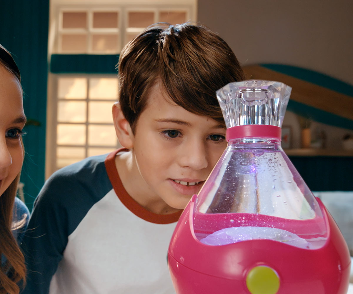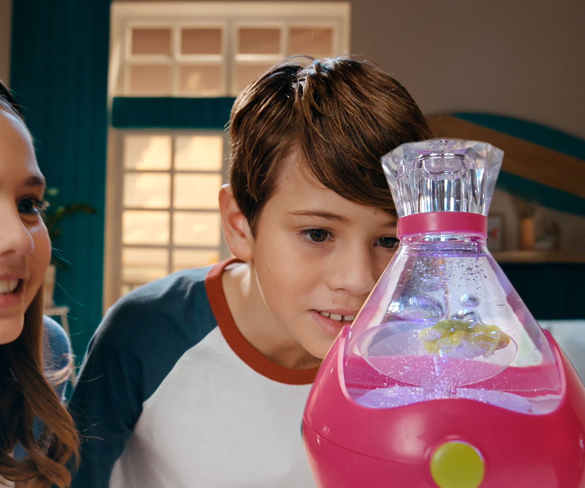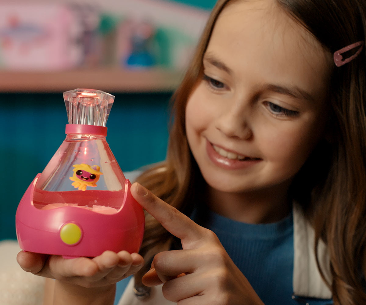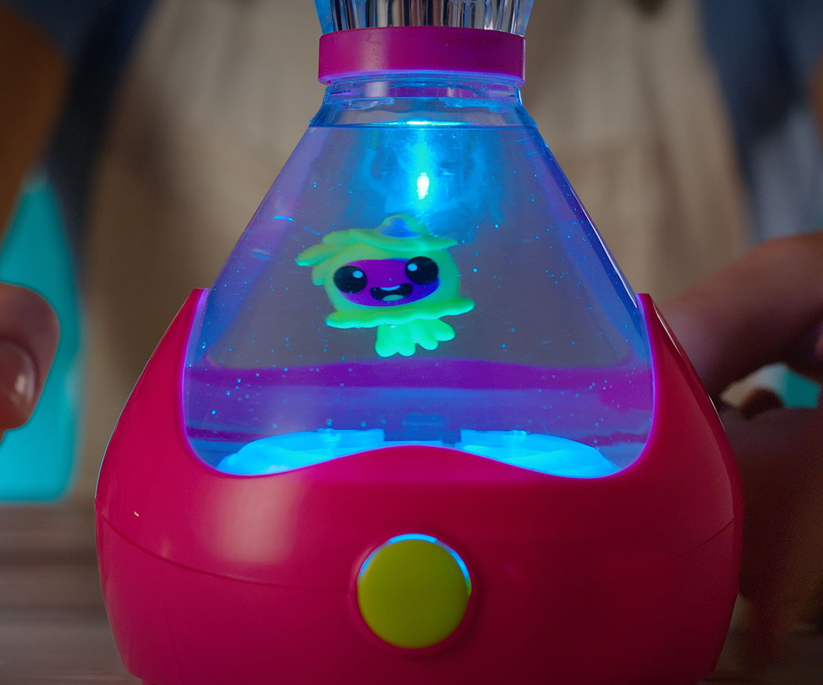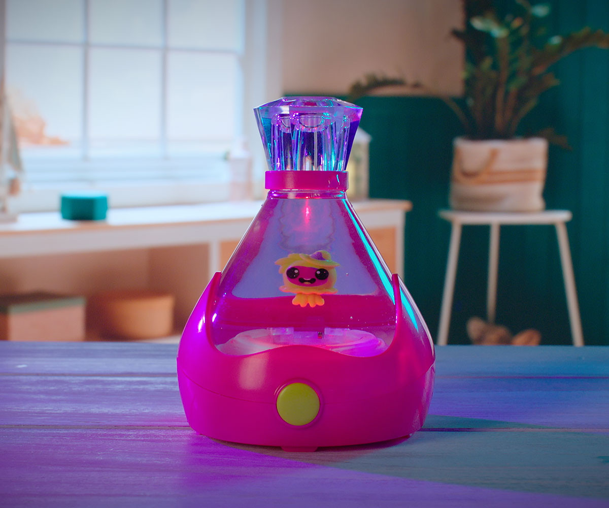 FIZZY PETS е мистериозен приятел, който се крие в омагьосана бутилка! Просто добави вода и гледай как FIZZY PET изскача с ефектно „шумолене“ и мехурчета! Играй със своя нов приятел, като докосваш лявата или дясната страна на бутилката – и наблюдавай как FIZZY PET магически плува със светлинни и звукови ефекти. Натисни бутона, за да влезеш в танцов режим, при който твоето FIZZY PET ще танцува весело на до 5 различни песни. Задръж бутона по-дълго, за да активираш нощен режим – тогава FIZZY PET ще плува бавно с още 5 различни приспивни мелодии, докато те придружава в съня. Успокояващите и сияйни нощни светлини го правят чудесна украса за детската стая. Можеш редовно да сменяш водата в бутилката, за да поддържаш FIZZY PET чисто и спретнато. Налични са 6 различни цвята бутилки и герои за избор. Препоръчителна възраст: 5+ години.