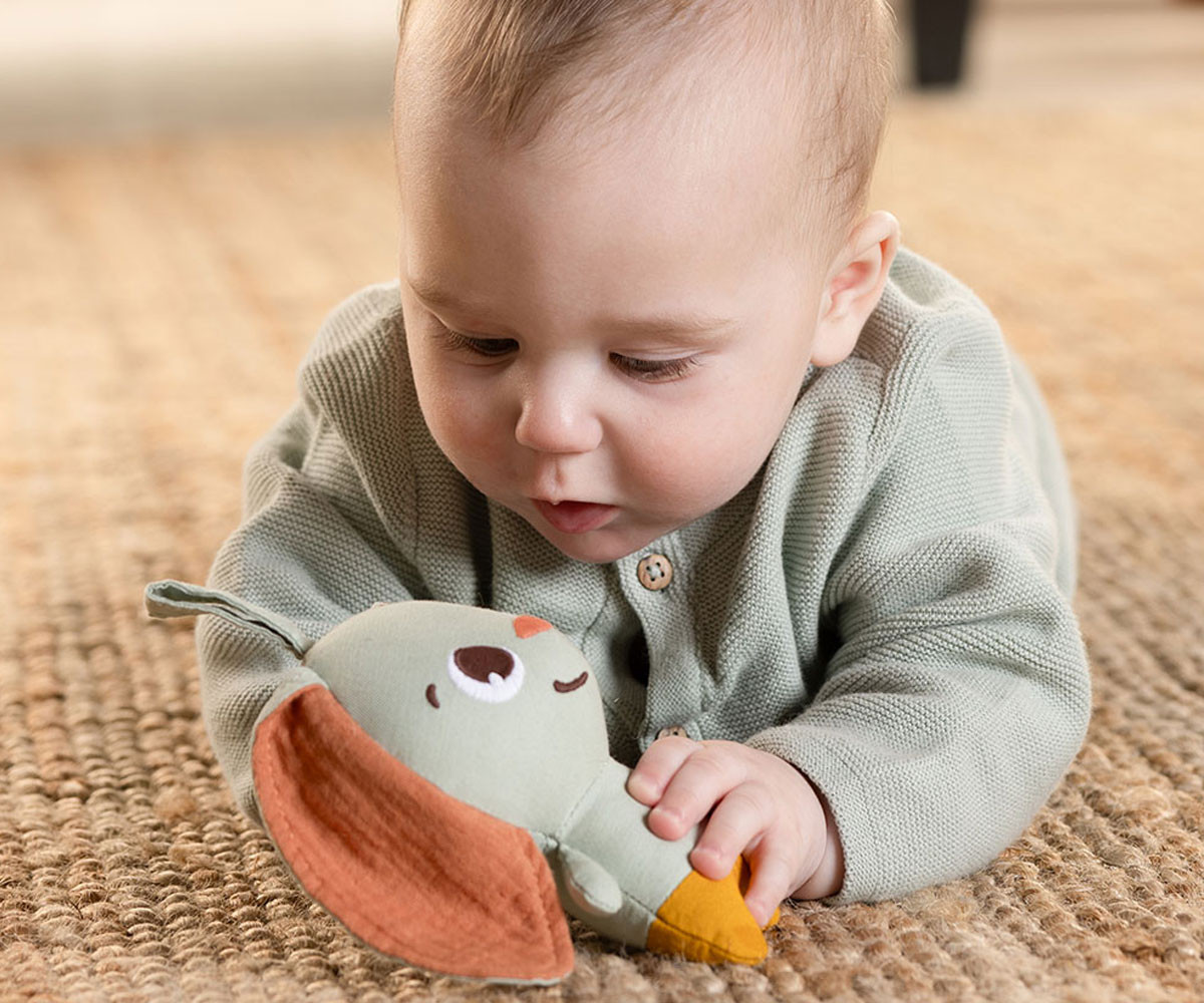 - 0-6+ месеца: Емоционално развитие. Играчката създава усещане за познатост и спокойствие по време на разходки и пътувания.