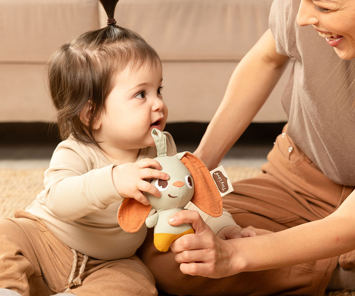 Очарователното Зайче от Еко колекцията Garden of Adventures на Tiny Love е идеалната играчка за гушкане, игра по корем у дома или забавление в движение с количката. Симпатичният заек-дрънкалка с меки муселинови уши и нежен памучен текстил ще успокоява и ангажира бебето навсякъде.