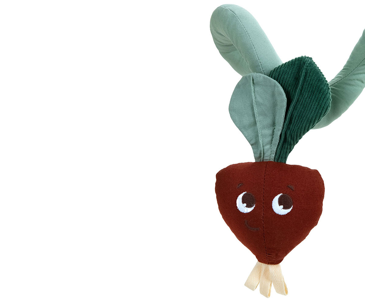 - Цвекло с памучни панделки и текстурирани листа от муселин и памук - стимулира фината моторика;