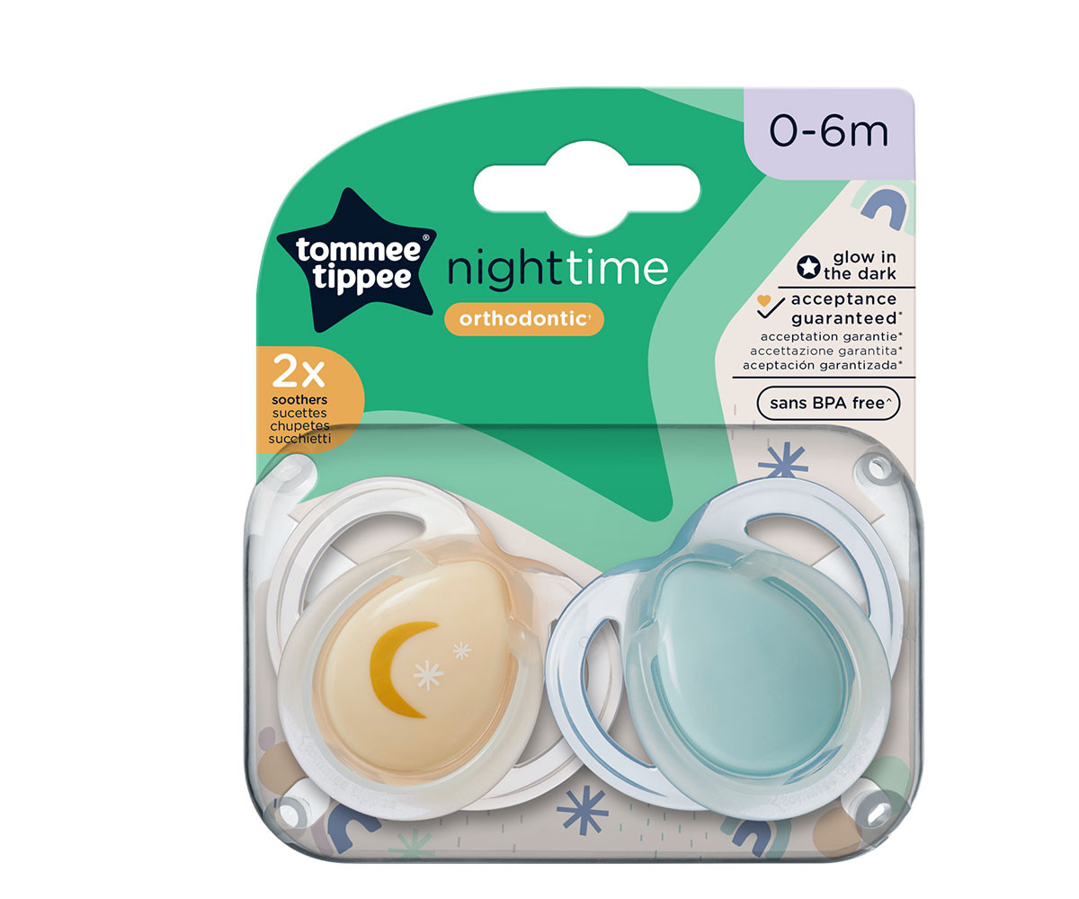 - Залъгалките Tommee Tippee NightTime са налични в три възрастови категории – 0-6м, 6-18м, 18-36м.