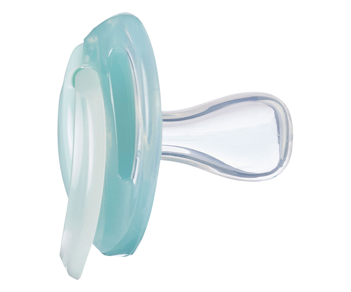 - Иновативна дръжка, която фосфоресцира в тъмното и позволява на родителите да намерят залъгалката в тъмна стая, без да се налага да безпокоят бебето;