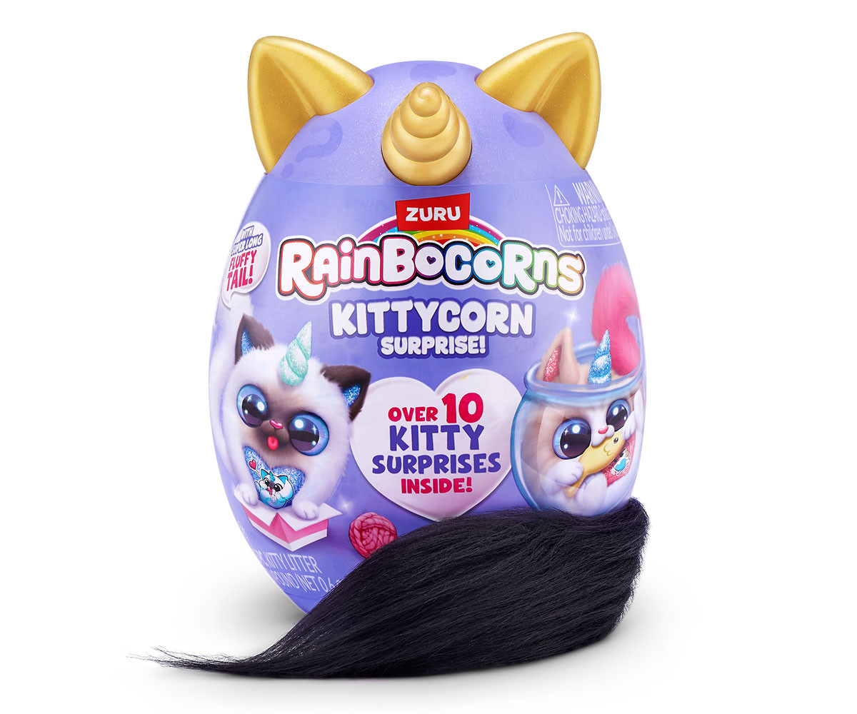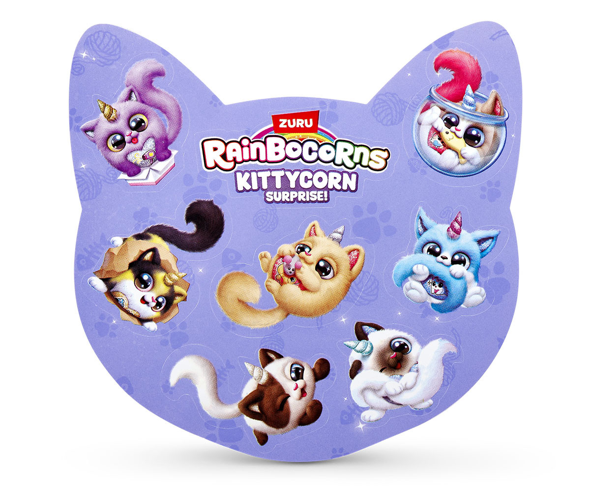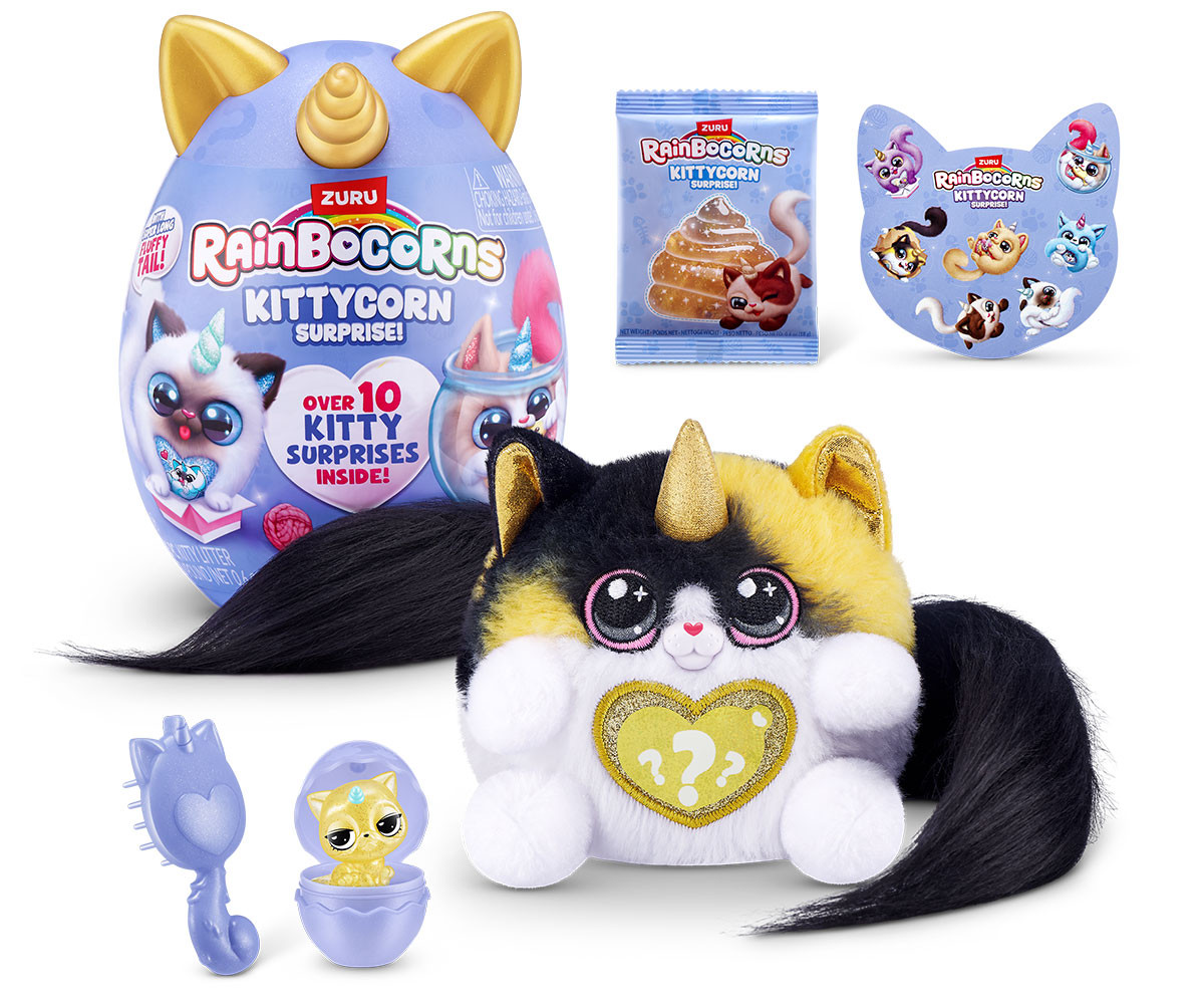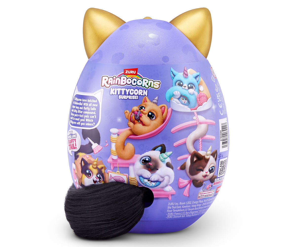 Най-перфектните котенца са се излюпили в Rainboville и са готови да играят в Kittycornia. С всички нови супер меки, супер дълги пухкави опашки, тези котенца ще станат най-добрите ви приятели. Кой Kittycorn ще разопаковате? Може да е редкият Kittycorn Munchkin! Погрижете се за вашия нов мъркащ перфектен приятел с включения гребен. Не забравяйте да отворите своя boo-boocorn и от яйцето му! Очаква ви повече забавление с еластичната смес за котешка тоалетна. Вътре има над 10 котешки изненади!